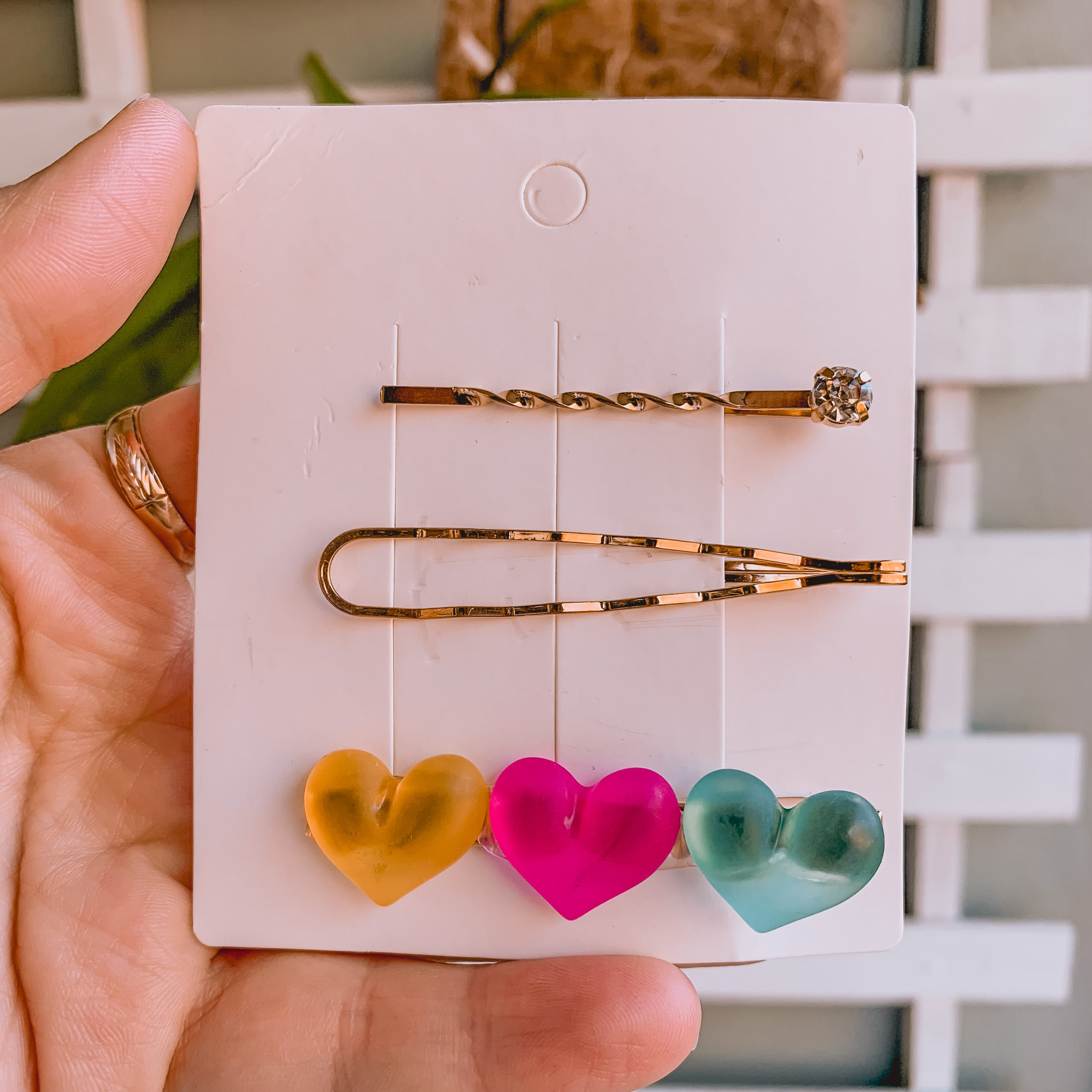 Essa cartela de prendedores possui 2 grampos e 1 bico de pato. Esses acessórios vão deixar seu penteado lindo, ideal para o dia a dia. Consulte cores.