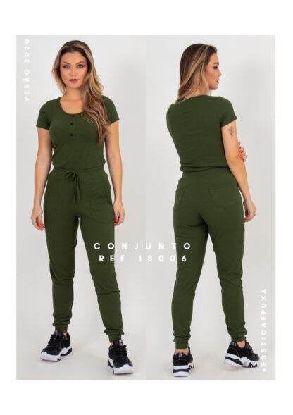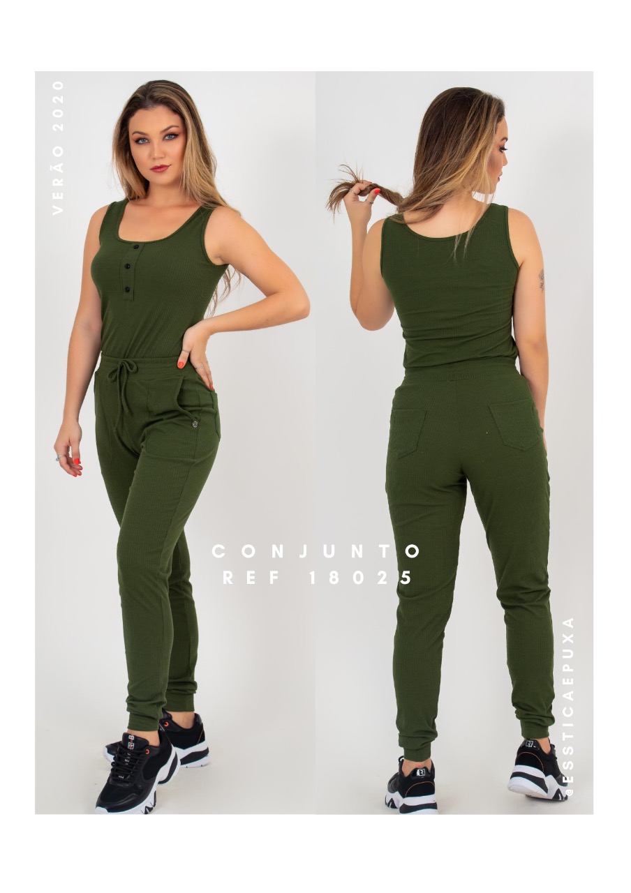 Conjunto de regata e calça jogger em malha canelada